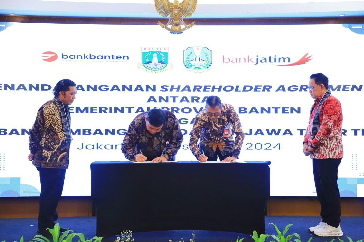 Prosesi penandatanganan perjanjian Shareholder Agreement dilakukan oleh Pj Gubernur Banten AI Muktabar dengan Direktur Utama (Dirut) Bank Jatim Busrul Iman. Kemudian dilanjutkan dengan penandatanganan perjanjian oleh Dirut Bank Banten Muhammad Busthami dengan Dirut Bank Jatim.