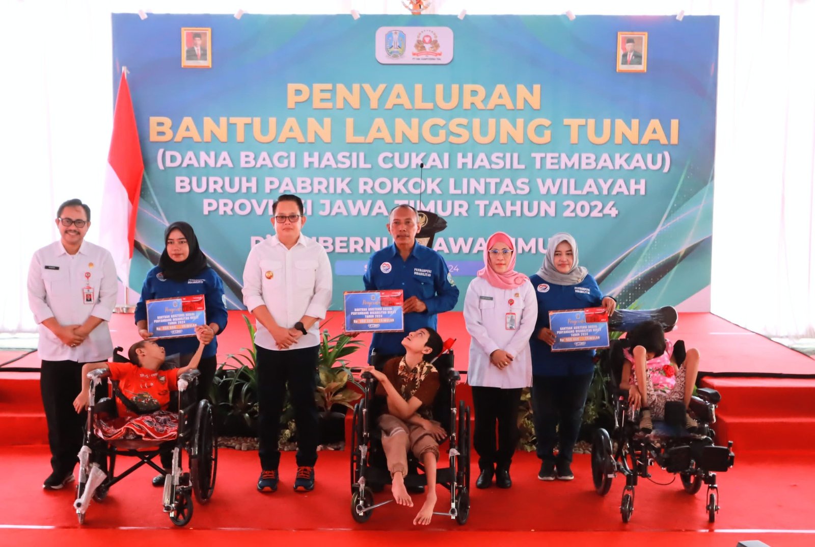 BLT DBHCHT ini disalurkan Pj. Gubernur Adhy secara simbolis kepada lima buruh pabrik rokok didampingi Kepala Urusan External PT. HM Sampoerna Arief Triastika dan Kepala Dinas Sosial Prov. Jatim Restu Novi Widiani. Masing-masing buruh menerima bantuan sebesar Rp1.031.145.