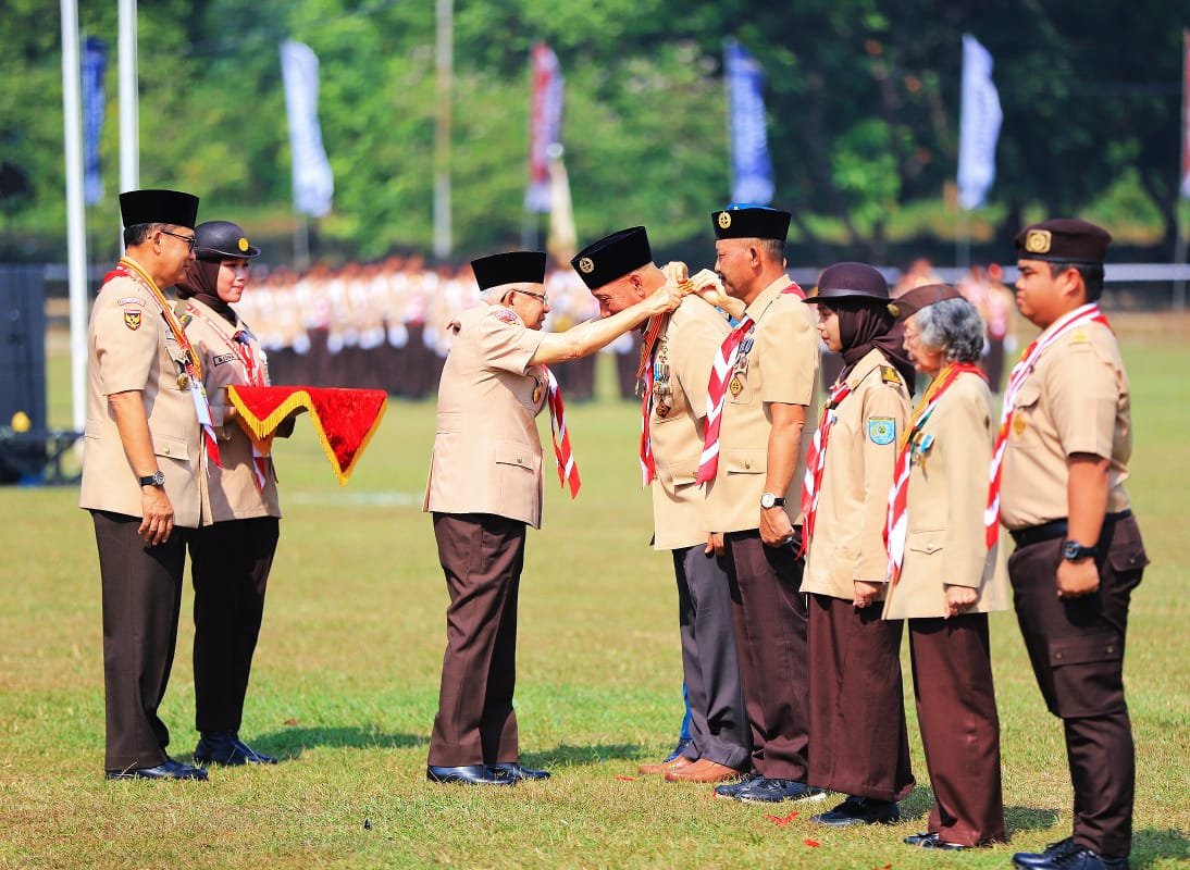 Pada Puncak Peringatan Hari Pramuka di Bumi Perkemahan Cibubur, bertindak sebagai Pembina Upacara Wakil Presiden Republik Indonesia KH Ma’ruf Amin.