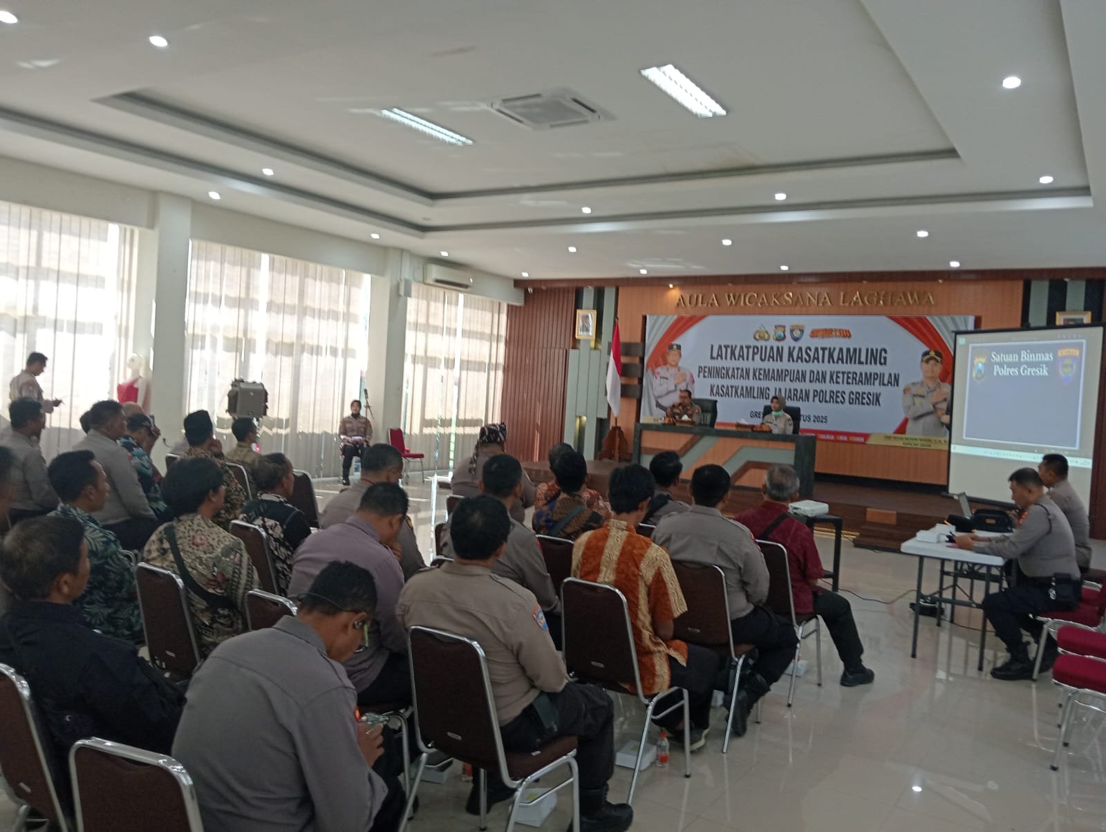GRESIK ,SabdaNews.com- Polres Gresik terus mendorong peningkatan kapasitas sumber daya manusia di tingkat masyarakat. Pada Rabu (27/8/2025), jajaran Polres Gresik menggelar pelatihan peningkatan kemampuan dan keterampilan untuk para Kepala Satuan Keamanan Lingkungan (Kasatkamling) se-wilayah hukum Polres Gresik. Bertempat di Aula Polres Gresik, kegiatan ini diikuti puluhan Kasatkamling yang antusias menyimak setiap materi. Hadir pula sejumlah pejabat kepolisian, di antaranya Kasat Binmas Polres Gresik AKP Alimuddin Nasution, Dokter Klinik Polres Gresik dr. Wiwit Stiorini, serta Kanit Pamobvit Polres Gresik Aipda Hari Aidarison dan Kasatkamling