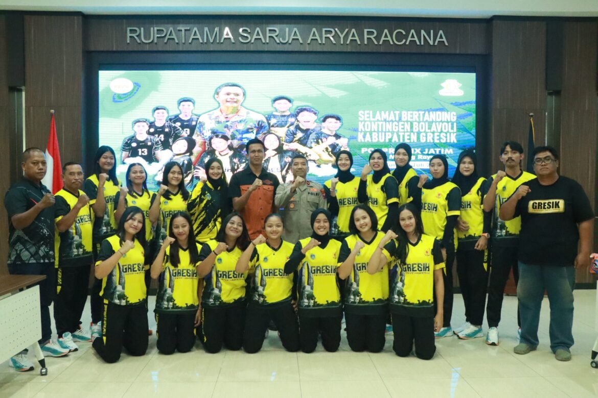 Hadir dalam pelepasan tersebut Wakapolres Gresik Kompol Danu Anindhito Kuncoro Putro didampingi Kasat Reskrim Polres Gresik AKP Abid Uais Al-Qarni Aziz, Sekretaris PBVSI Kabupaten Gresik Aiptu Andrian Susanto, para pelatih, staf, dan para atlet bola voli yang akan berangkat menuju ajang Porprov IX di Malang Raya.