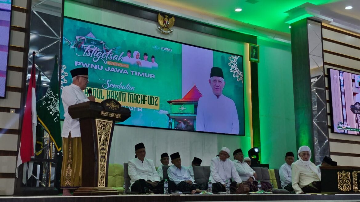 KH Kikin A. Hakim Mahfudz Ketua Tanfidziyah PWNU Jatim juga Pengasuh Ponpes Tebuireng Jombang dalam sambutanya mengatakan, Dalam menyikapi kondisi terkini dengan banyaknya bencana dan Musibah maka agar dikaruniai keteduhan dan keselamatan bagi kita warga NU Jawa Timur dan daerah di seluruh Nusantara, ” mari kita berdoa memohon kepada Allah dengan Istighosah dan Doa bersama mudah mudahan apa yang menjadi tujuan dan niatan kita di kabulkan oleh Allah SWT,” Amiin Yarabbal Alamin, ” tutup Yai Kikin sapaan akrabnya.