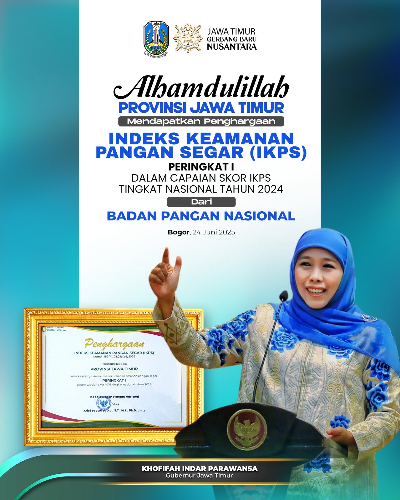 “Alhamdulillah, prestasi ini adalah hasil kerjasama semua instansi terkait dan lapisan masyarakat di Jawa Timur. Ini menunjukkan tingkat kepercayaan masyarakat terhadap keamanan pangan segar di Jawa Timur tinggi,” ujar Gubernur Jatim, Khofifah Indar Parawansa, di Surabaya, Rabu (2/7/2025).