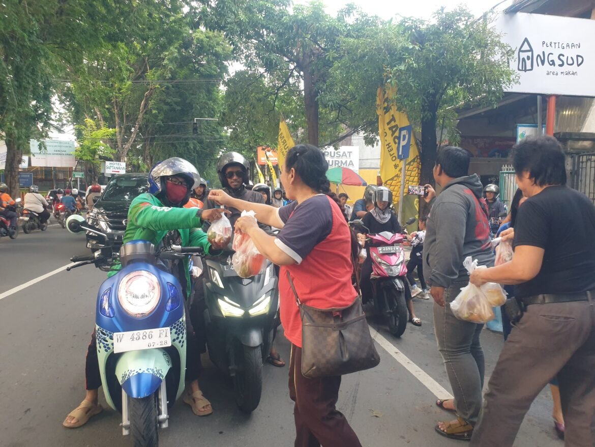 GRESIK – Suasana berbeda tampak di depan gerbang masuk Gereja Bethel Indonesia (GBI) Rock Gresik di Jl. Panglima Sudirman, Kamis (6/3/2025) sore. Hal ini lantaran umat Kristiani ini membagikan ratusan takjil kepada warga yang melintas.