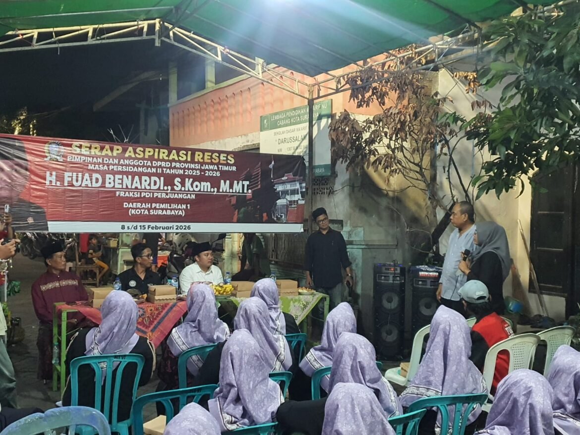 SabdaNews.com  – Anggota DPRD Jawa Timur dari Daerah Pemilihan (Dapil) 1 Surabaya, Fuad Benardi S.Kom, M.MT menerima banyak aspirasi dan keluhan dari warga saat menggelar kegiatan serap asirasi atau reses II tahun 2026 di Pesapen Barat Kelurahan Tanjung Perak Kecamatan Pabean Cantikan Kota Surabaya, pada Rabu (11/2/2026) malam.