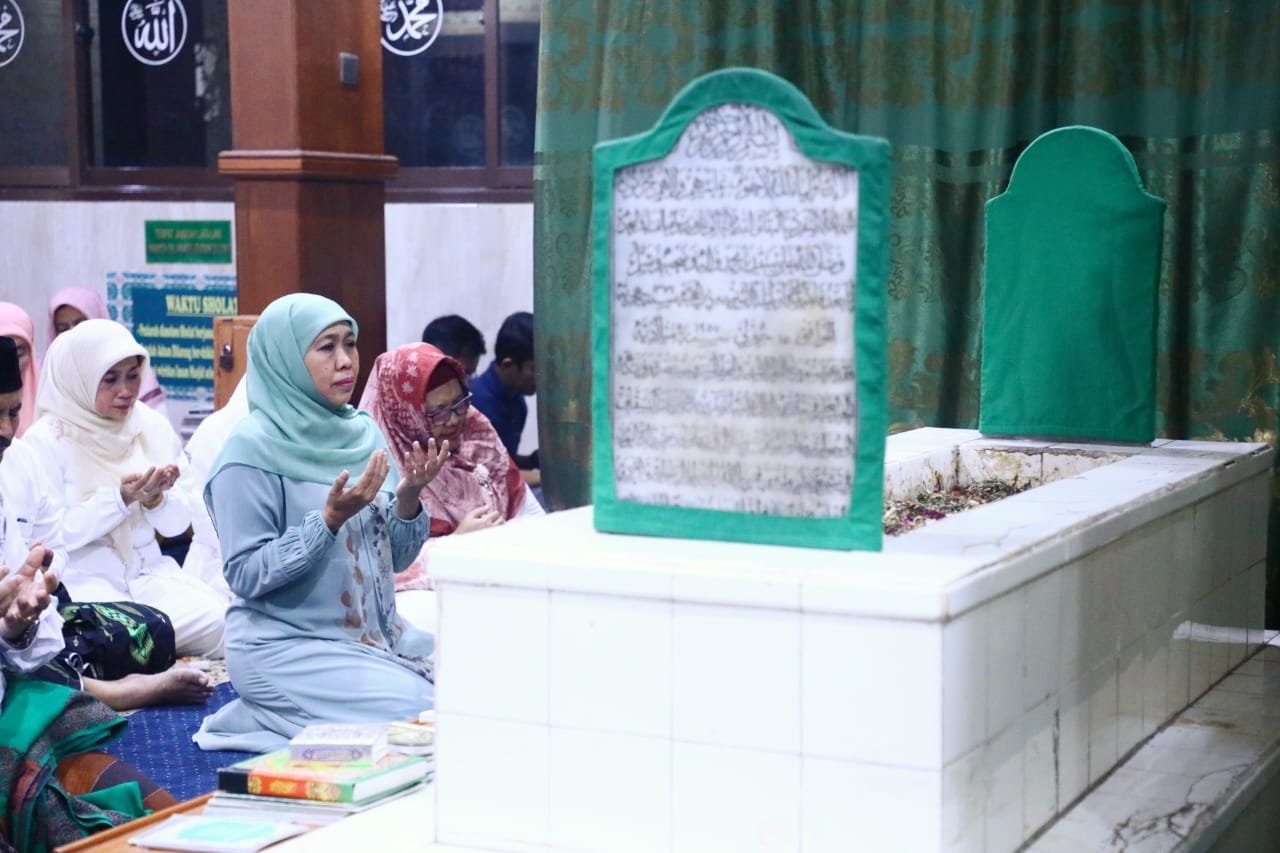 Salah satunya saat Gubernur Khofifah sholat tarowih di masjik Jami’ Gresik yang di dalamnya juga terdapat makam Habib Abu Bakar Bin Muhammad Umar Assegaf yang terletak di dalam Masjid Jami’ Kabupaten Gresik, Minggu (26/3) lalu.