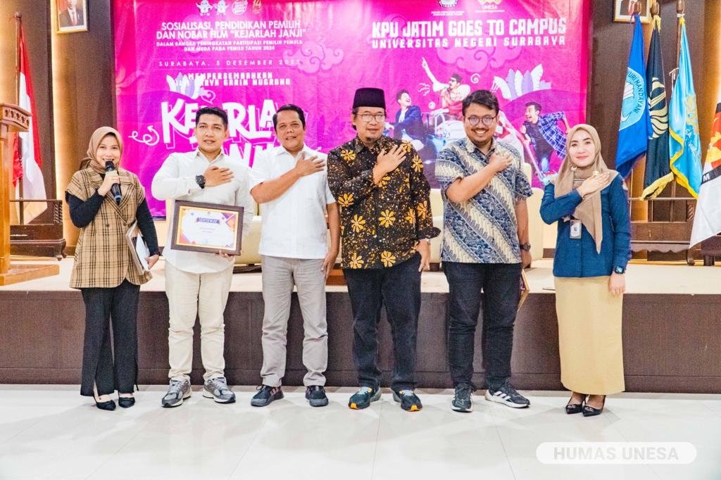Sementara, di Unesa kegiatan nobar digelar di awal sebelum sosialisasi dan pendidikan pemilih. Sebab, dua narasumber yang hadir berkesempatan mereview film tersebut.