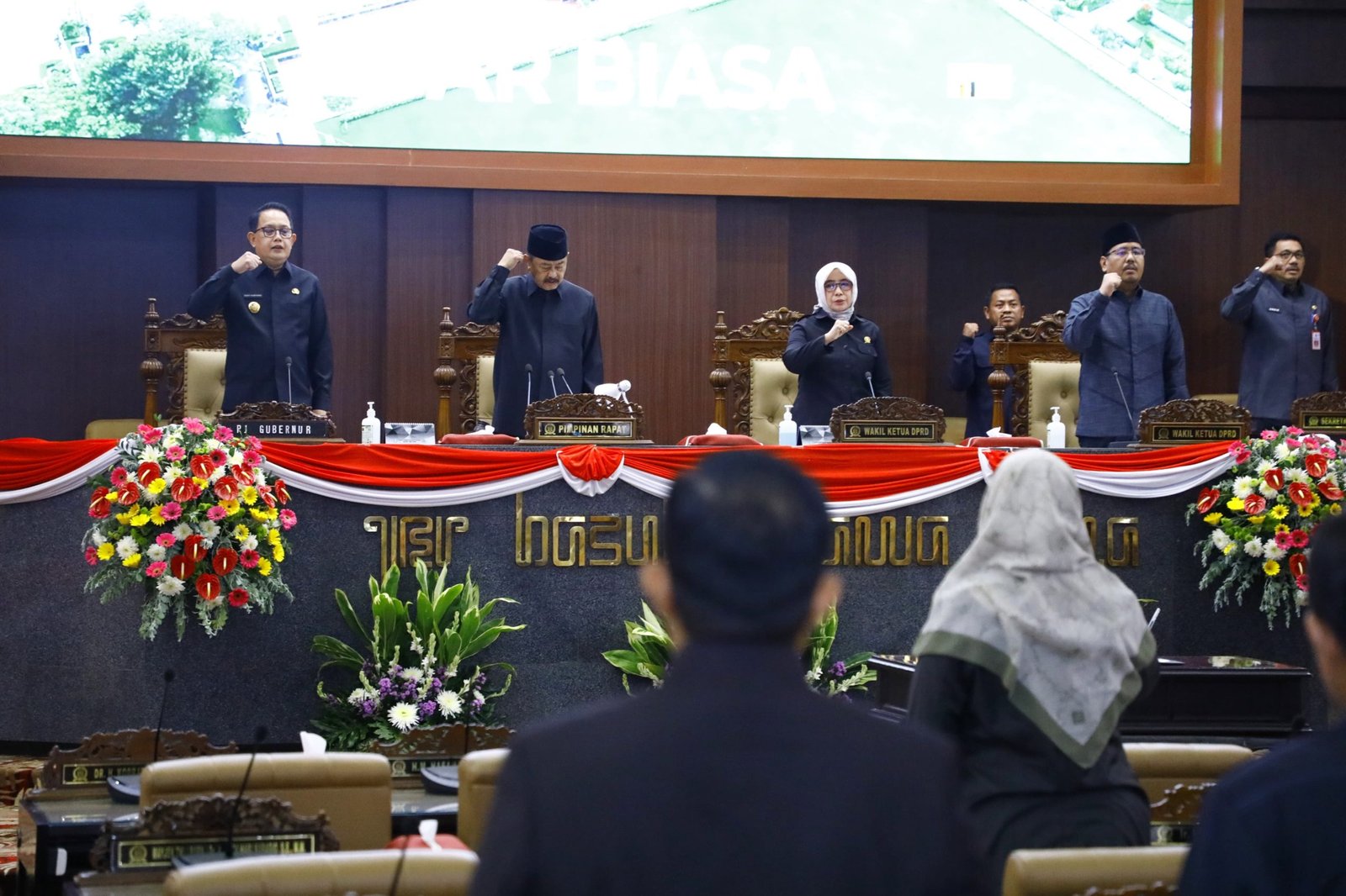 SabdaNews.com – Penjabat (Pj) Gubernur Jawa Timur Adhy Karyono menyampaikan Laporan Keterangan Pertanggungjawaban (LKPJ) Akhir Tahun Anggaran 2023 di hadapan anggota dan pimpinan DPRD Jatim, di Jl. Indrapura, Surabaya, Senin (25/3/2024).