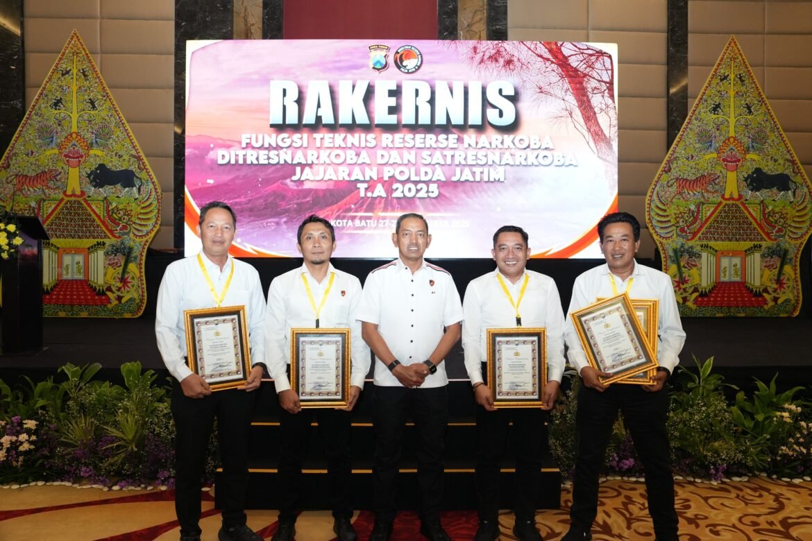 Penghargaan tersebut diserahkan langsung oleh Direktur Reserse Narkoba Polda Jawa Timur, Kombes Pol. Robert Da Costa, kepada Kasat Resnarkoba Polres Gresik, AKP Ahmad Yani, dalam kegiatan yang berlangsung pada Kamis hingga Jumat di Hotel The Singhasari Resort Batu, Kota Batu.