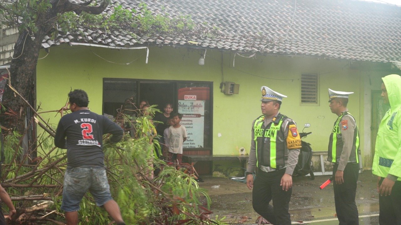 Kasat lantas Polres Gresik AKP Rizki Julianda Putra Buna menerangkan, Tanpa menunda waktu petugas langsung melakukan evakuasi pohon tumbang guna memastikan jalur kembali aman dan lalu lintas dapat berjalan lancar. Dengan peralatan sederhana, mereka bekerja sama untuk membersihkan jalan dari batang dan ranting yang berserakan.