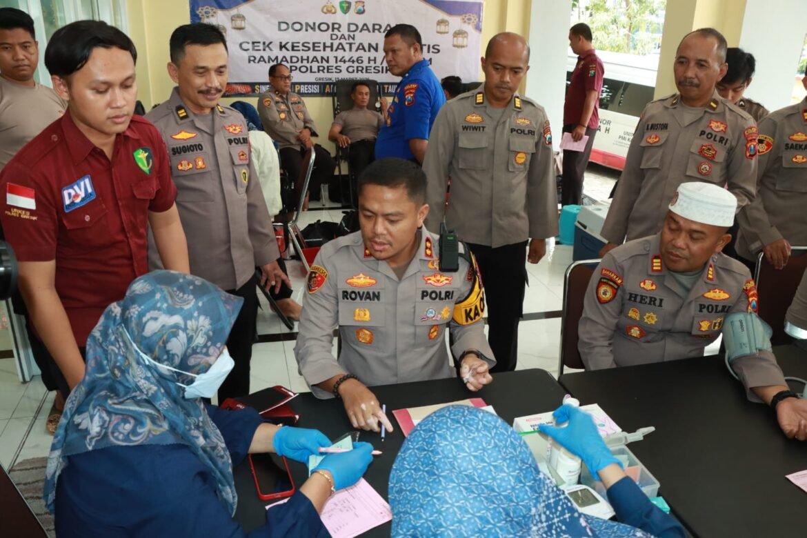 Kapolres Gresik AKBP Rovan Richard Mahenu beserta Pejabat Utama (PJU) dan jajaran personel turut hadir dalam kegiatan ini. Dalam sambutannya, Kapolres menekankan bahwa donor darah bukan hanya bermanfaat bagi kesehatan pendonor, tetapi juga menjadi aksi kemanusiaan yang sangat dibutuhkan, terutama saat stok darah di PMI sering mengalami penurunan selama Ramadan.