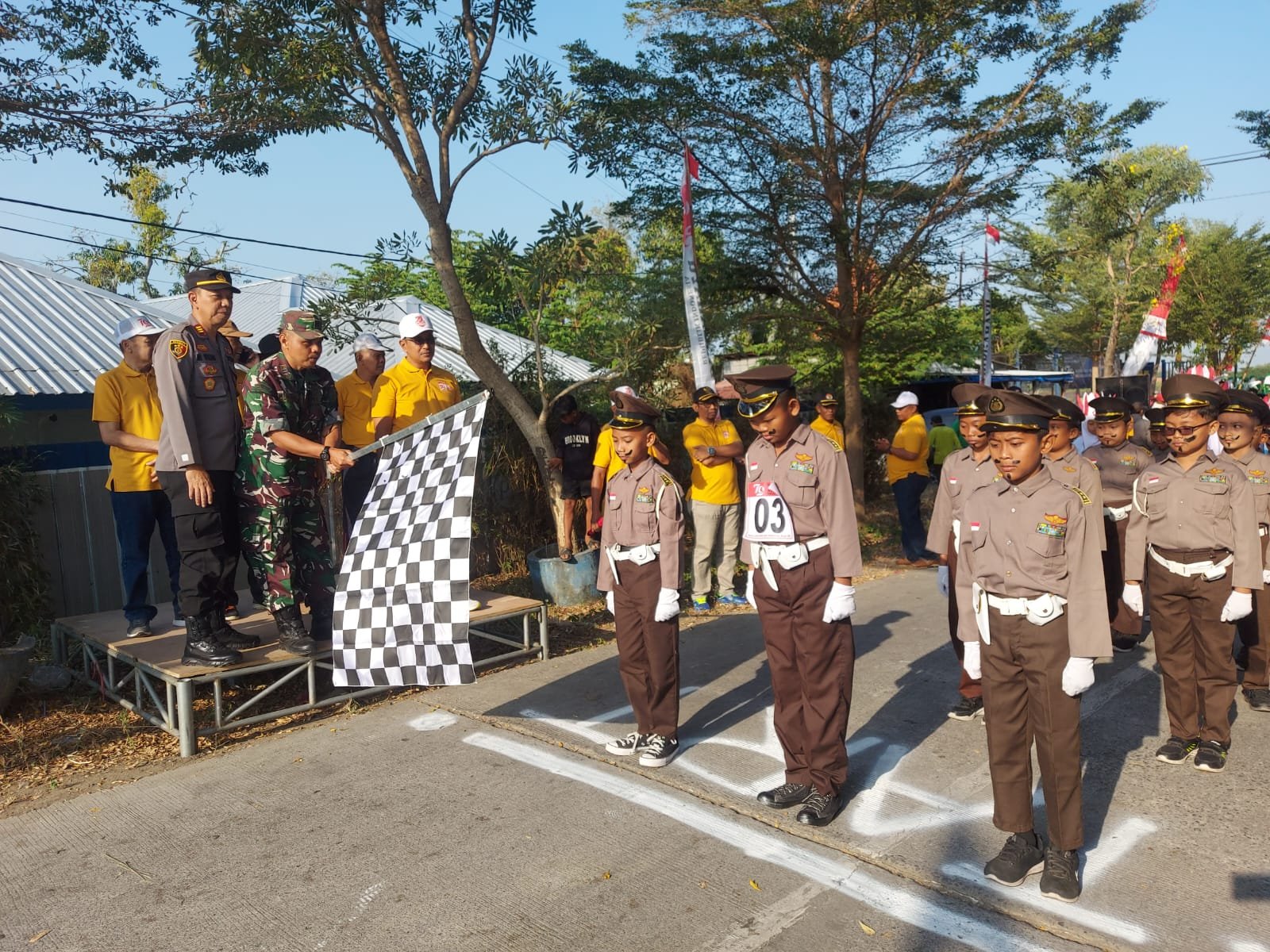 GRESIK, SabdaNews.com-  Dalam rangka semarak HUT Kemerdekaan RI ke-79, mulai Camat, Kapolsek, Danramil, Kades dan Seluruh Masyarakat Guyub Rukun Ikuti Gerak Jalan Tradisional Sidomukti – Bungah, Kecamatan Bungah, Kabupaten Gresik, Minggu (11/8/2024).  Bahkan, ratusan pelajar tingkat SD/MI hingga SMA/MA, serta organisasi masyarakat (ormas) dan berbagai komunitas, termasuk PPK (Panitia Pemilihan Kecamatan) Bungah turut sertavmemeriahkan Gerak Jalan Tradisional Sidomukti – Bungah, yang merupakan agenda rutin di Momen HUT RI.