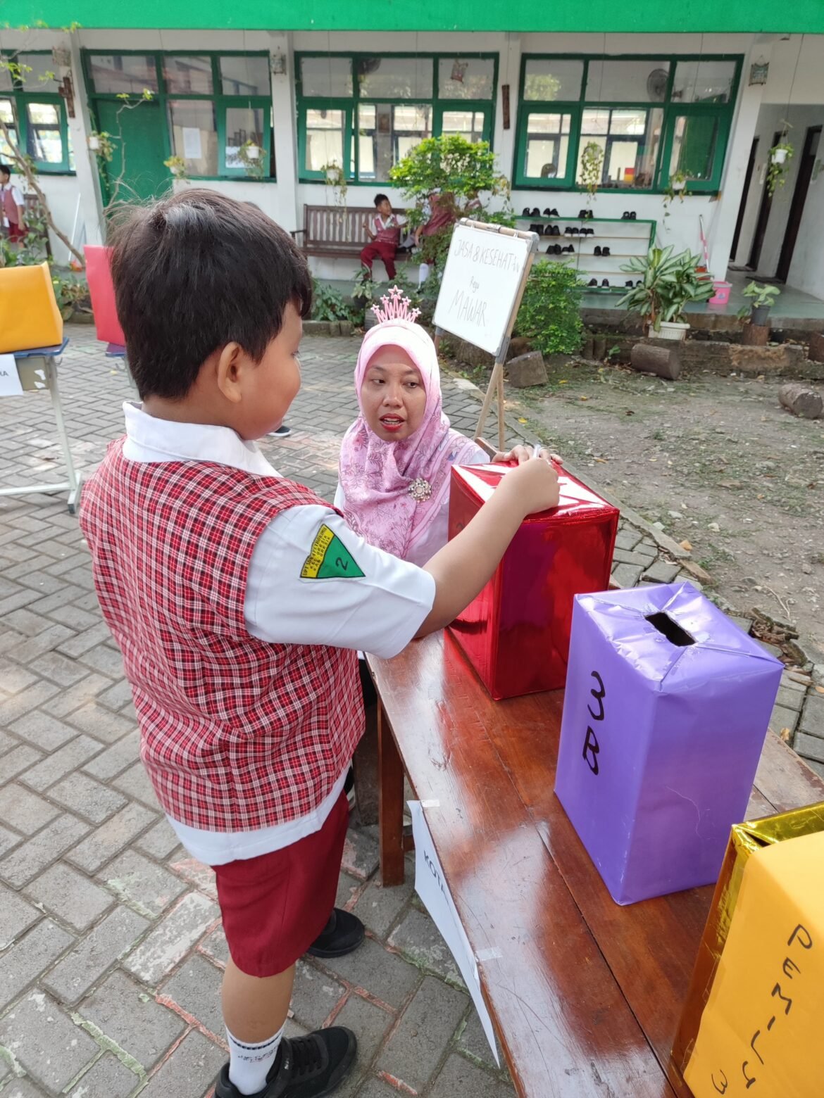 Dengan semangat dan antusiasme tinggi, siswa kelas 3 mengikuti simulasi pemilu mini di dalam kelas. Mereka belajar tentang pentingnya memilih pemimpin, tata cara pemungutan suara, dan proses penghitungan suara. Beberapa siswa berperan sebagai calon ketua kelas, sementara yang lain menjadi panitia dan pemilih. Suasana halaman kelas pun berubah seperti tempat pemungutan suara sungguhan, lengkap dengan bilik suara dan kotak suara buatan sendiri.