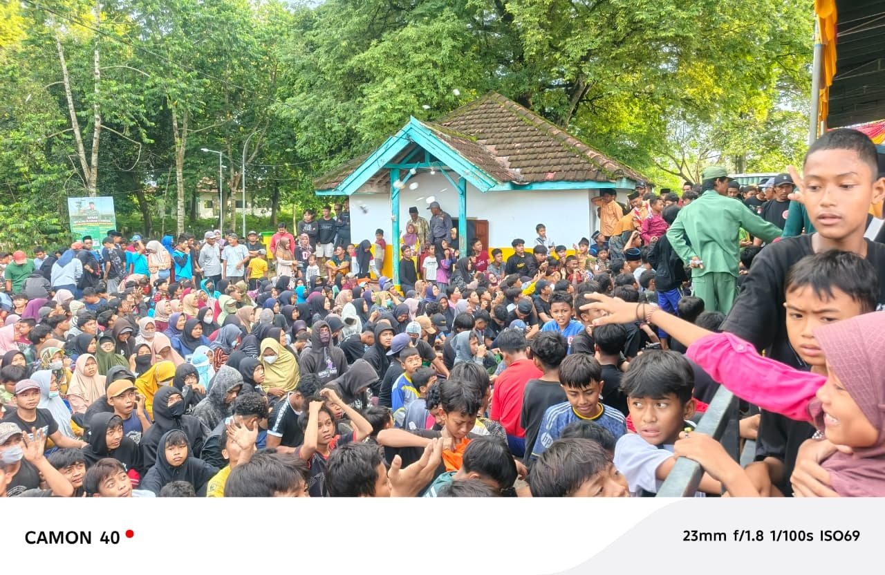 Seru Dan Semarak Ratusan Warga Berebut Udik-Udikan Uang Koin Di Gelaran Sedekah Bumi (Dekahan) Pemdes Tebuwung Dukun