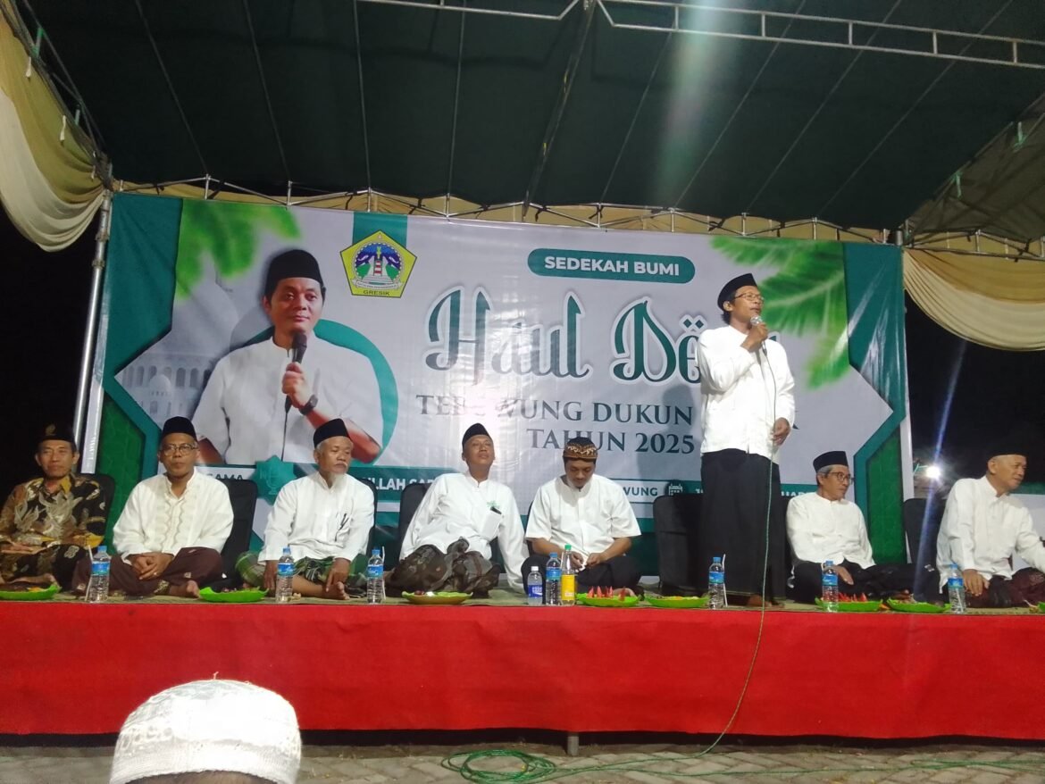 GRESIK, SabdaNews.com-  Berbagai macam rangkaian acara Sedekah Bumi atau Haul Desa Tebuwung Dukun Gresik digelar penuh semarak. Kegiatan ini menjadi program tahunan menjelang datangnya bulan Ramadhan dengan berbagai acara, diantaranya : Kerja Bakti Desa, Maulid Simtudduror, Sembelih Sapi, Pengajian umum, Tahlil, Gunungan Hasil Bumi Doa Bersama, dan Malam Ishari serta yang paling seru Udik-Udikan uang receh. Kegiatan Haul Desa dipusatkan di lapangan Makam Desa Tebuwung, Kamis (20/02/2025).