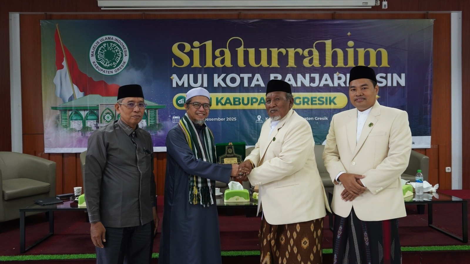 GRESIK, SabdaNews.com – Majelis Ulama Indonesia (MUI) Kabupaten Gresik kembali kedatangan tamu dari pulau seberang. Kali ini, yang datang berkunjung dan bersilaturrahim adalah MUI Kota Banjarmasin Provinsi Kalimantan Selatan, pada Senin (8/12/2025).  Kedatangan puluhan Pengurus MUI Kota Banjarmasin ini, disambut langsung Ketua Umum MUI Kabupaten Gresik KH. Ainur Rofiq Thoyyib beserta jajaran, di Aula MUI Kabupaten Gresik.