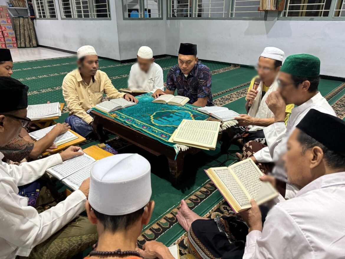 Keterangan foto : Para narapidana warga Binaan Pemasyarakatan (WBP) Rumah Tahanan (Rutan) Kelas II B Gresik tadarus khataman Alquran di Masjid At – Taubah. (Lim/Gus/Red)