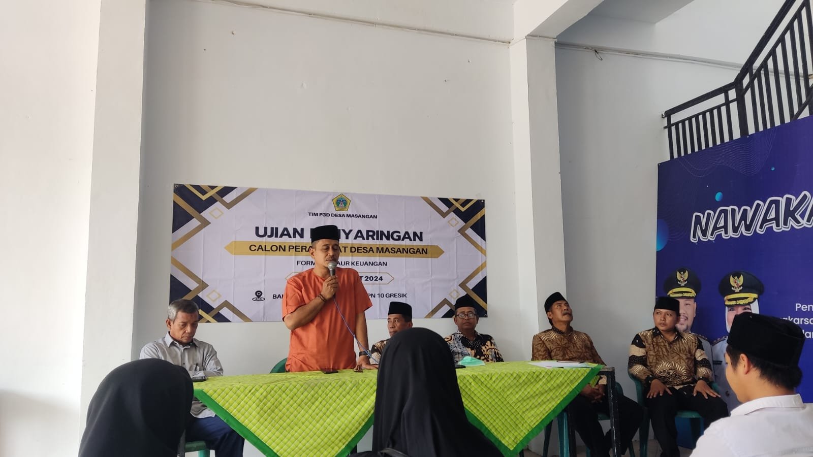 GRESIK,SabdaNews.com – Pemerintahan Desa (Pemdes) Masangan, Kecamatan Bungah, Kabupaten Gresik sukses menggelar proses penyaringan perangkat desa, Sabtu (30/3/2024). Proses yang super ketat tersebut sesuai ketentuan dalam Pasal 22-24 Peraturan Bupati Gresik Nomor 19 Tahun 2017 tentang Tata Cara Penjaringan, Penyaringan, Pengangkatan, dan Pemberhentian Perangkat Desa. Tim Penjaringan dan Penyaringan Perangkat Desa (P3D) berperan aktif dalam menjalankan proses ini.