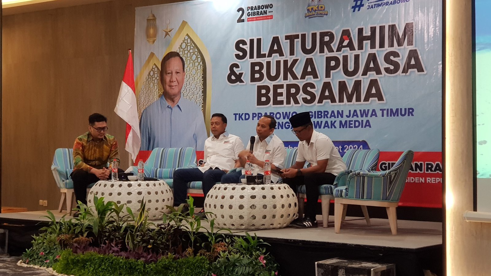 SabdaNews.com – Setelah KPU RI resmi mengumumkan hasil rekapitulasi perolehan suara Pilpres 2024, dimana pasangan Prabowo-Gibran dinyatakan menang dengan perolehan 96,2 juta suara atau sekitar 58 persen. Tim Kampanye Daerah (TKD) Prabowo-Gibran Jatim menggelar silaturrahim dan tasyakuran dirangkai buka bersama dengan elemen relawan paslon 02 beserta para jurnalis di Surabaya pada Kamis (21/3/2024).