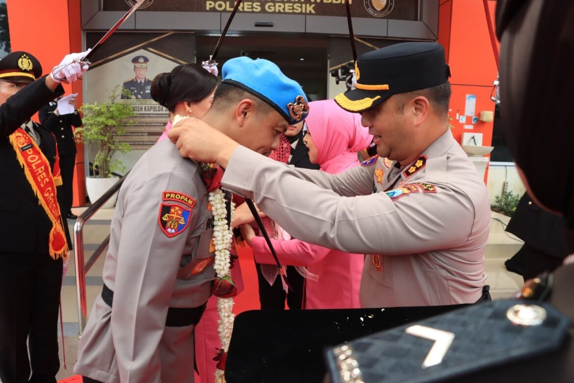 Didampingi istri, AKBP Ramadhan Nasution melangkah di bawah naungan pedang pora yang melambangkan doa dan harapan agar senantiasa diberikan perlindungan, kekuatan, serta kebijaksanaan dalam mengemban tugas sebagai Kapolres Gresik. Nuansa kearifan lokal turut mewarnai penyambutan melalui alunan angklung selamat datang dari SLB Kemala Bhayangkara 2 Gresik serta persembahan hadrah sebagai wujud penghormatan dan kebanggaan terhadap budaya daerah. Agenda kemudian dilanjutkan dengan Laporan Kesatuan oleh Kapolres lama AKBP Rovan Richard Mahenu, yang memaparkan kondisi wilayah hukum Polres Gresik, program-program yang telah dan sedang berjalan, hingga berbagai tantangan tugas ke depan kepada Kapolres baru.