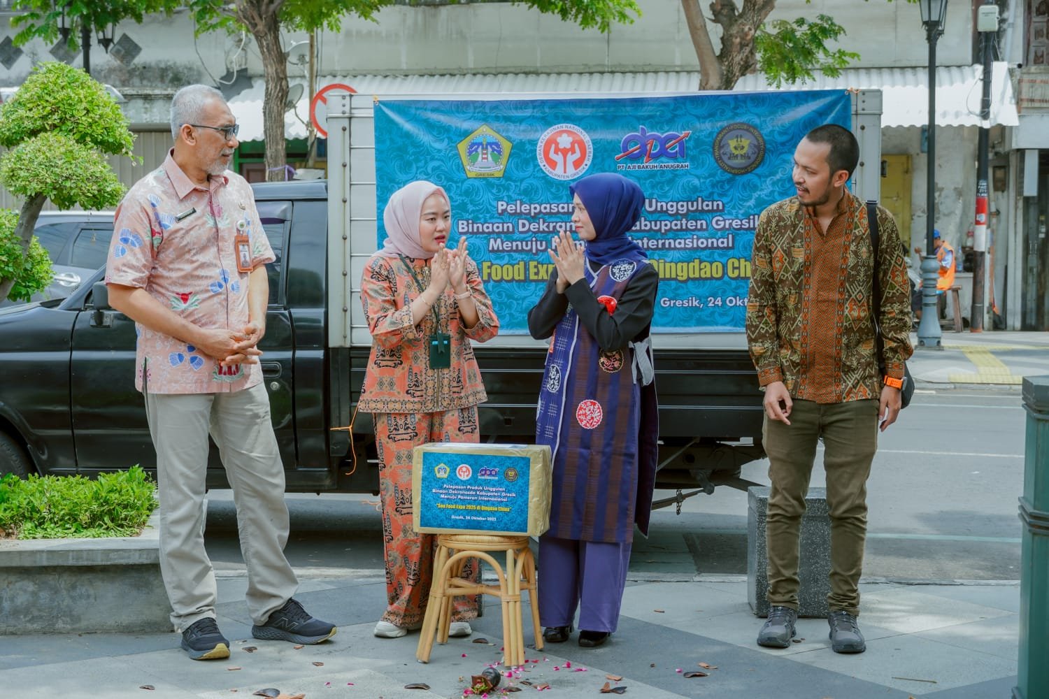 GRESIK, SabdaNews.com – Dewan Kerajinan Nasional Daerah (Dekranasda) Gresik berkolaborasi dengan Dinas Koperasi, Perindustrian dan Perdagangan (Diskoperindag) serta Bea Cukai Gresik mengirimkan produk unggulan UMKM ke China. Jum,at (24/10/2025) Sebanyak 18 produk bahari hasil kurasi tersebut telah diseleksi oleh eksportir berpengalaman untuk mengikuti pameran internasional “Sea Food Expo 2025” di Qingdao, China.
