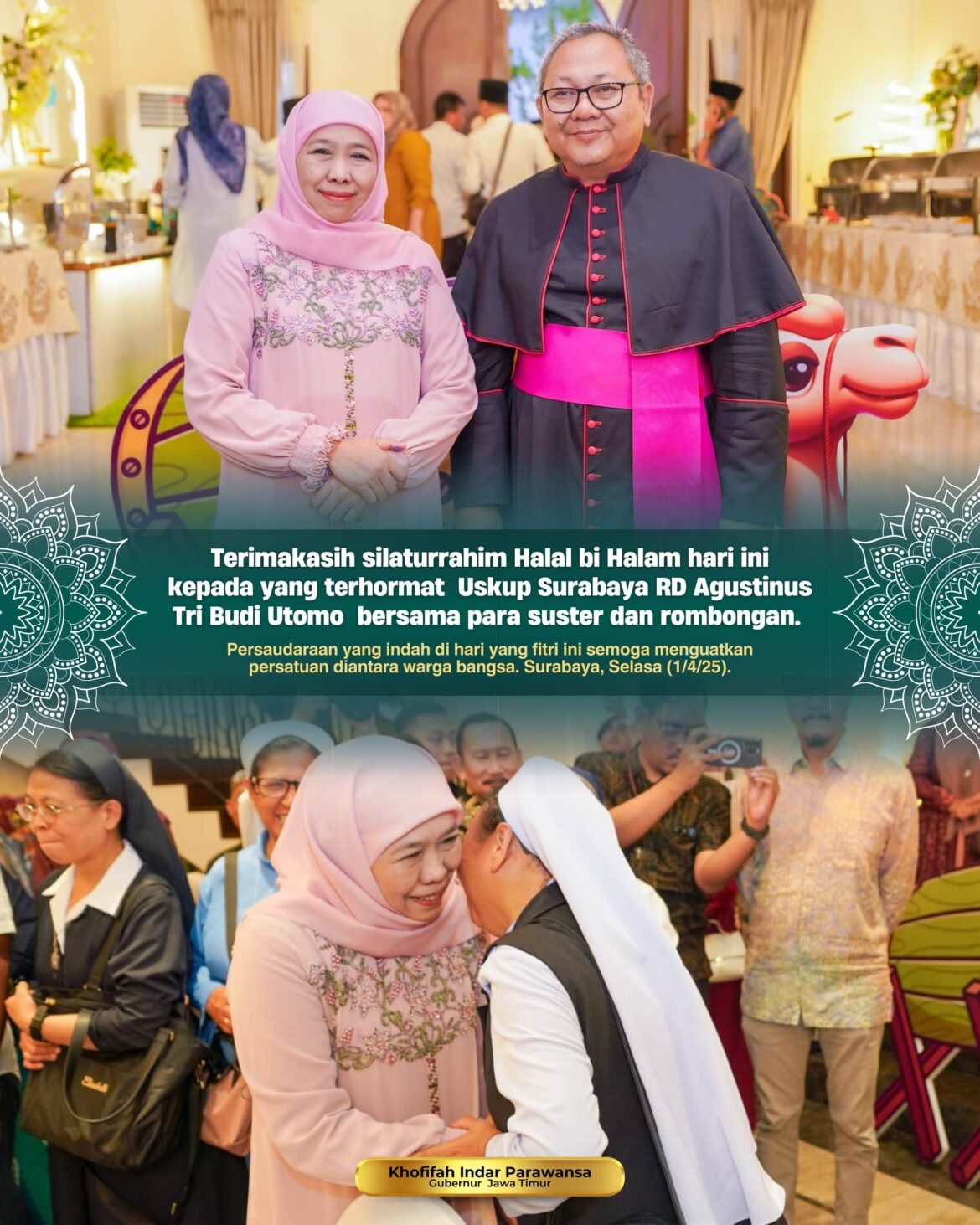 Uskup Surabaya RD Agustinus Tri Budi Utomo dan Para Suster Hadiri Open House Lebaran di Kediaman Gubernur Khofifah