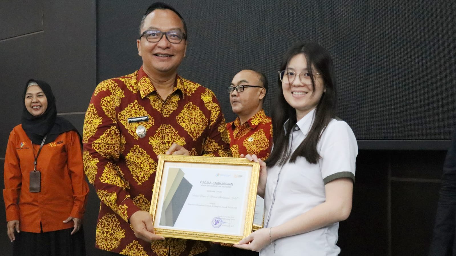 Dalam rangkaian acara Workshop Statistik Berdampak Untuk Indonesia Maju, BPS Kabupaten Gresik juga memberikan sejumlah penghargaan kepada Mitra BPS diantaranya:  • Mitra Strategis OPD Terbaik: Dinas Komunikasi dan Informatika Kabupaten Gresik  • Kontributor Publikasi “Kabupaten Gresik dalam Angka” Terbaik: Dinas Kependudukan dan Pencatatan Sipil Kabupaten Gresik  • Responden Perusahaan Terbaik: Fugui Flour & Grain Indonesia   Turut hadir dalam kegiatan tersebut Sekretaris Dinas Kependudukan dan Pencatatan Sipil, Siti Muklisyatin, Plt. Kepala Dinas Komunikasi dan Informatika, Kiki Nuriyadi serta Administrator KEK Gresik, Slamet Sukanto.  (lim/Red)