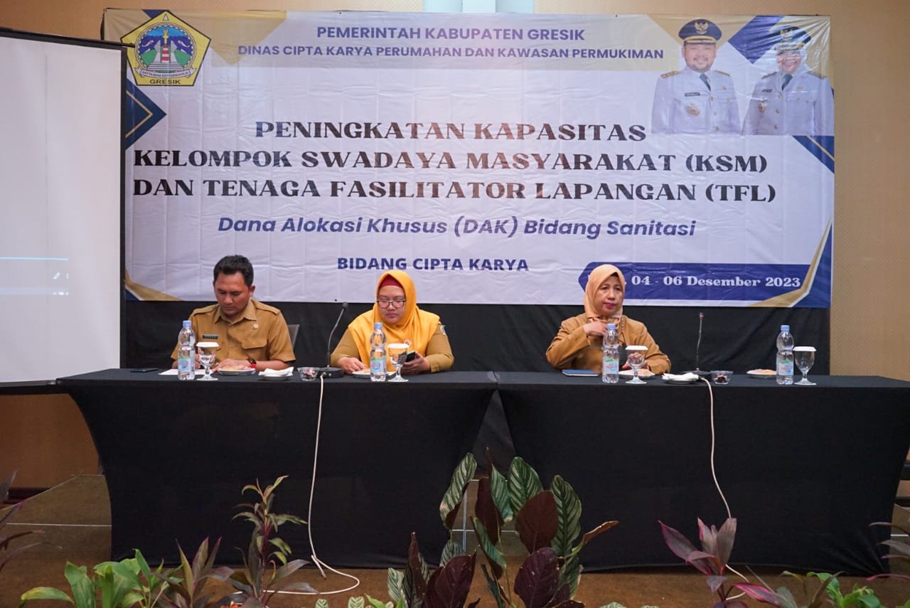 GRESIK, SabdaNews.com- Dinas Cipta Karya Perumahan dan Kawasan Permukiman (CKPKP) Kabupaten Gresik, menggelar kegiatan peningkatan kapasitas Kelompok Swadaya Masyarakat (KSM) dan Tenaga Fasilitator Lapangan (TFL) Dana Alokasi Khusus (DAK) bidang sanitasi. Kegiatan dibuka Wakil Bupati Gresik Aminatun Habibah didampingi Kepala Dinas CKPKP Ida Lailatussa’diyah bertempat di El Hotel Kartika Wijaya Kota Batu, Senin (4/12/2023).
