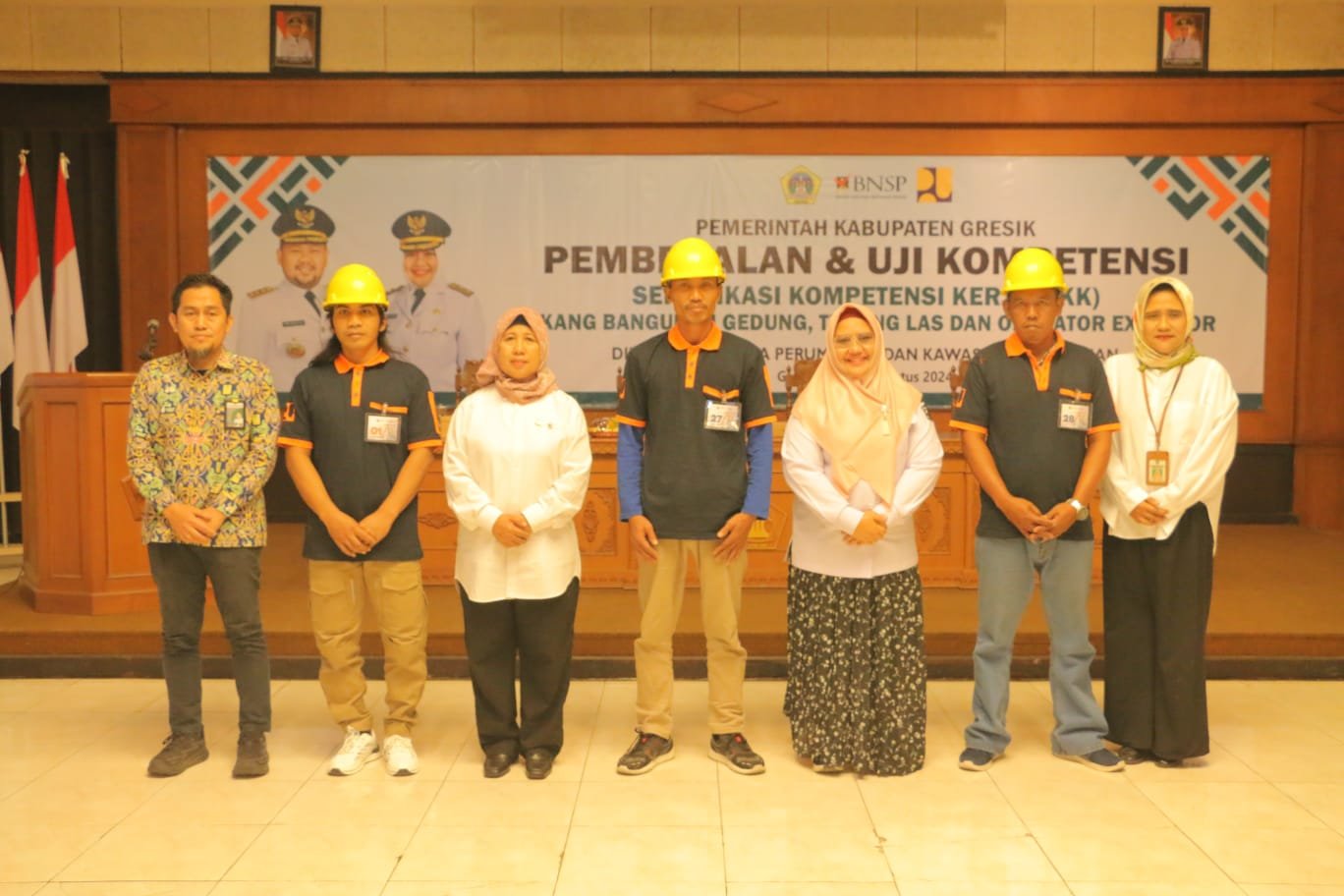 GRESIK, SabdaNews.com– Dinas Cipta Karya Perumahan dan Kawasan Permukiman (CKPKP) menggelar pembekalan dan uji kompetensi Sertifikasi Kompetensi Kerja (SKK) tukang bangunan gedung, tukang las dan operator exavator. Diikuti 163 peserta, kegiatan digelar di gedung Mandala Bakti Praja Kantor Pemerintah Kabupaten (Pemkab) Gresik, Rabu, (28/8/2024).