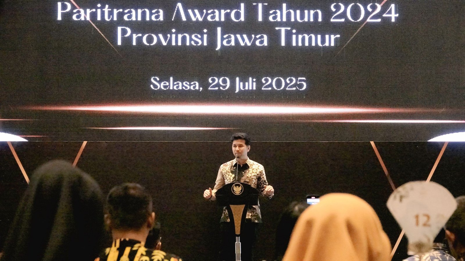 SabdaNews.com – Wakil Gubernur Jawa Timur Emil Elestianto Dardak menegaskan bahwa jaminan sosial ketenagakerjaan merupakan instrumen penting dalam mewujudkan keadilan dan kesejahteraan sosial di tengah masyarakat. Hal ini disampaikannya saat menghadiri Penganugerahan Paritrana Award Tahun 2024 yang digelar di Hotel Vasa, Surabaya, Selasa (29/7/2025).