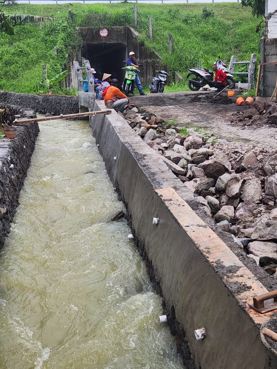 Meskipun 100 persen belum rampung, hal ini karena kendala musim hujan. Namun Pengerjaan proyek sudah hampir 70 persen lebih bahkan sudah bisa berfungsi sebagai drainase atau saluran air untuk kebutuhan warga.