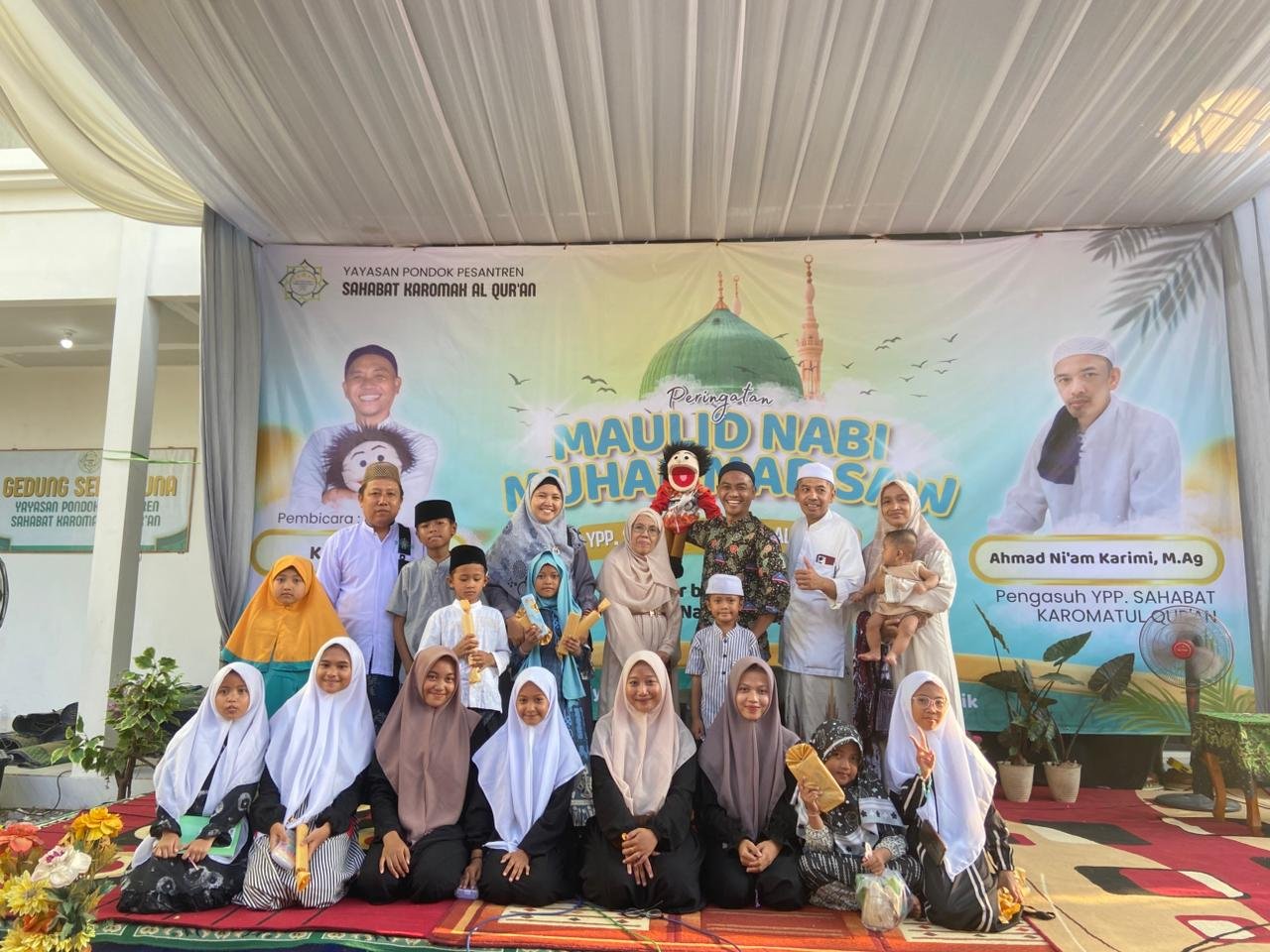 KH Ahmad Niam Karimi Pengasuh YPP Sahabat Karomah Al Qur’an menyampaikan , rasa syukur kita panjatkan kepada Allah hari ini kita bisa berkumpul Silaturrahmi dalam keadaan terik panas tetapi semua tetap semangat untuk kebersamaan kita di peringatan Maulid Nabi SAW.  “Acara ini kita fokuskan kepada anak anak bocil tingkat pendidikan SD/MI hal ini sengaja kita akomodir para bocil dengan tujuan penanaman Akhlaq mulia Rasul. Karena dengan metode mendongeng inilah di harapkan bisa menyentuh kepada hati anak anak yang semestinya mendapatkan lebih banyak suri Tauladan dari cerita yang disampaikan. Yai Niam menyebut masa depan anak anak harus ditanamkan sejak dini,” Disinilah ide Maulid Nabi SAW dengan menghadirkan pendongeng Nasional kak Zaky,” terang Yai Niam.